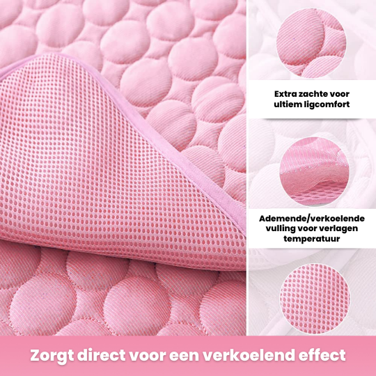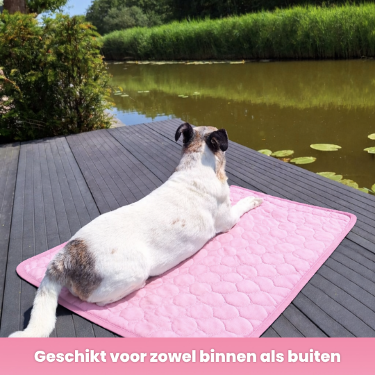 Een cooling mat voor honden en katten is van uiterst belang tijdens de warme zomerdagen. Honden en katten kunnen namelijk geen verkoeling vinden in bijvoorbeeld koud water of koude lucht. Onze huisdieren zweten namelijk hun te warme lichaamstemperatuur uit. De cooling mat hond is van binnen gevuld met een unieke vulling die de lichaamswarmte van een hond of kat opneemt en ventileert, hierdoor zal jouw hond of kat direct merken dat zij het minder warm hebben en dat zorgt voor een fijner gevoel. Je zal dit dan ook binnen 5 minuten zien doordat honden minder gaan hijgen en beter tot rust komen. Om een koelmat voor honden en katten te gebruiken, is het niet nodig om het kleed eerst uren in de koelkast te leggen. Dit scheelt tijd en moeite. Het kleed kan dus direct gebruikt worden wanneer dit nodig is en zo kan jouw viervoeter urenlang afkoelen op een zacht dekentje!